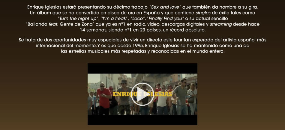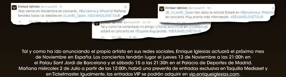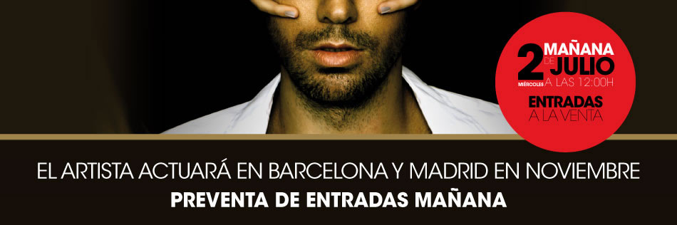 ¡Enrique Iglesias en concierto! 13/11 Barcelona y 15/11 Madrid. Preventa de entradas mañana